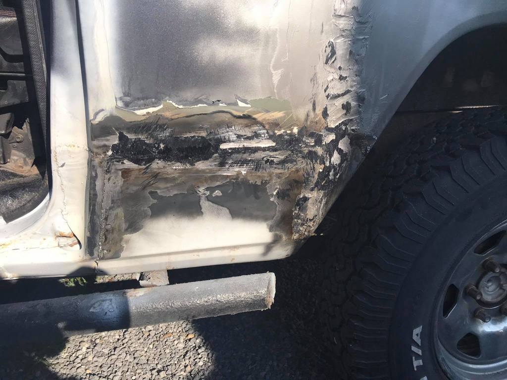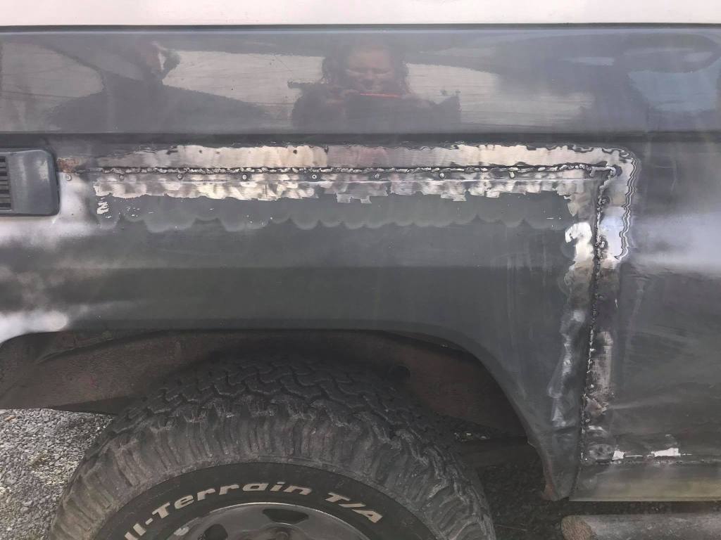 Na het bouwverlof hadden we de land cruiser gelukkig terug en konden we verder werken aan de carrosserie. Deze platen waren namelijk nog niet afgelast omdat je dat niet mag voor de keuring…