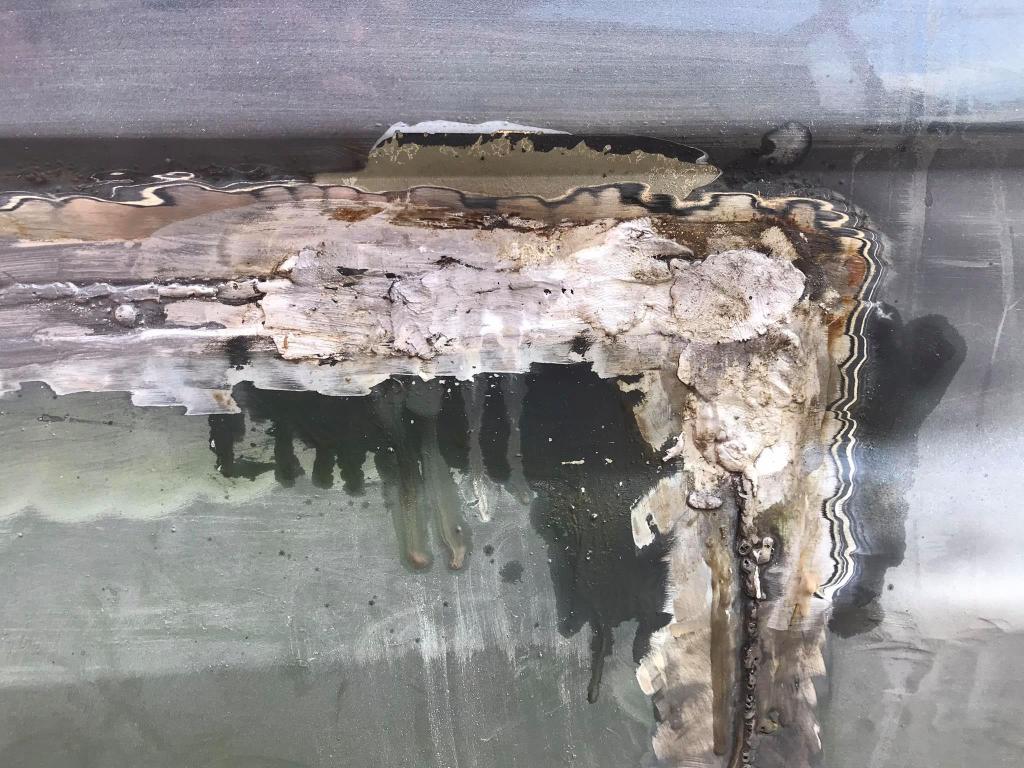 Toen alles was afgelast moesten we enkel de lasnaad nog opvullen. We dachten dit eerst te doen met plamuur. Maar omdat plamuur meestal maar tijdelijk is hebben we gekozen voor vertinnen.
