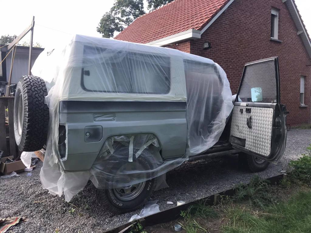 Toen de kleur erop stond was het echt een wereld van verschil. Je kon weer zien hoe de jeep er ongeveer origineel uitgezien moest hebben. De kleur verschilt natuurlijk lichtjes met de rest omdat dit nieuwe verf is, en de rest afgebleekt is in de zon. Maar ondanks dat, was het een enorm goed resultaat!