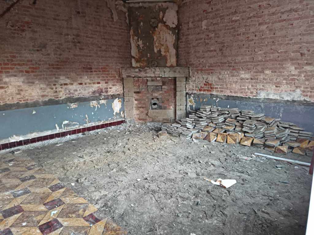 Versta hieronder; valse plafonds eruit, vloer eruit, vinyl van de vloer verwijderen, leem van de muren,…