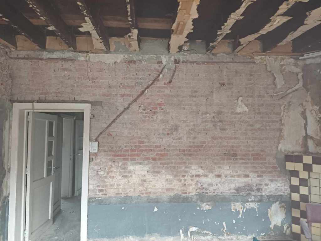 Ik hoor het je al denken, amai wat een werk heb je aangeschaft. Niets is minder waar. Het is inderdaad enorm veel werk. Maar we kunnen het wel meteen naar ons eigen stijl en goesting inrichten. En zo’n totaalrenovatie kan wel een tijdje aanslepen, daarom hebben we beslist om ons vooral te focussen op de beneden verdieping. Van het moment het woonbaar is kunnen we hier in trekken en verder sparen voor de bovenverdieping.